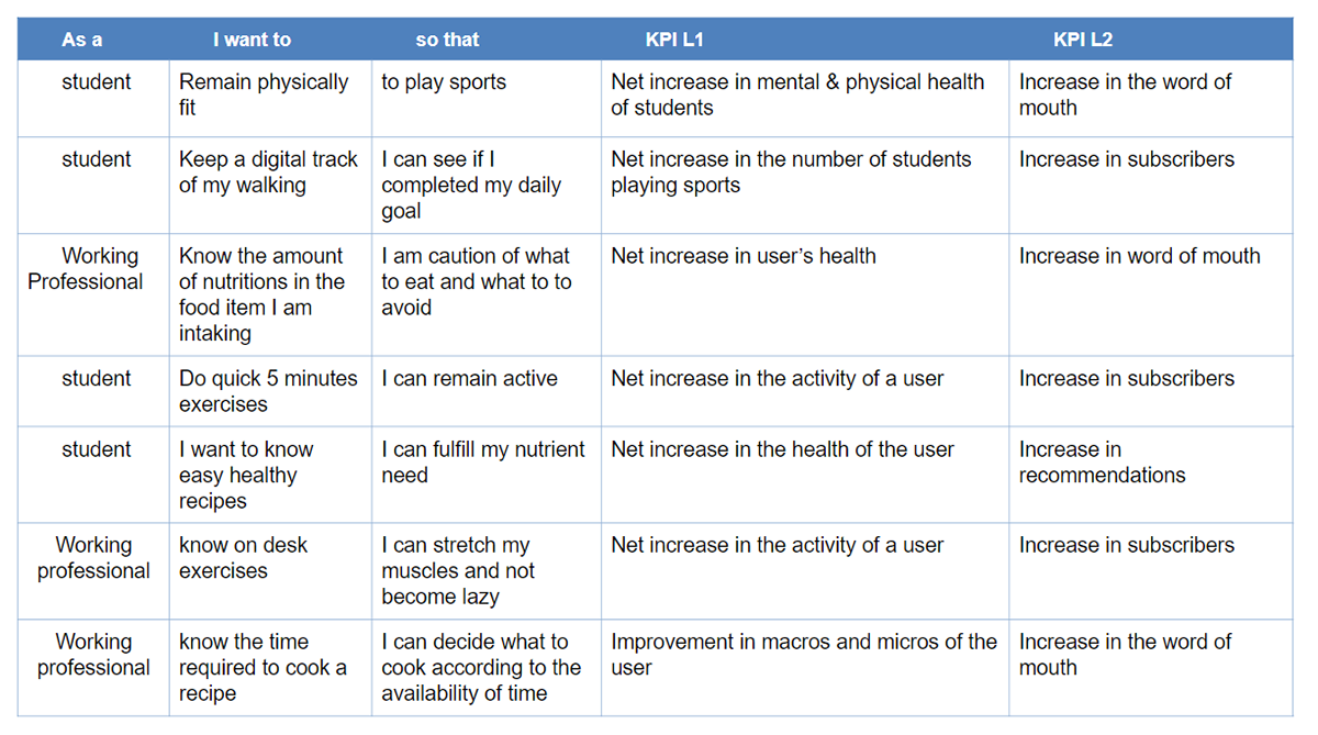 Our product will be measured on the basis of these Key Indicators-