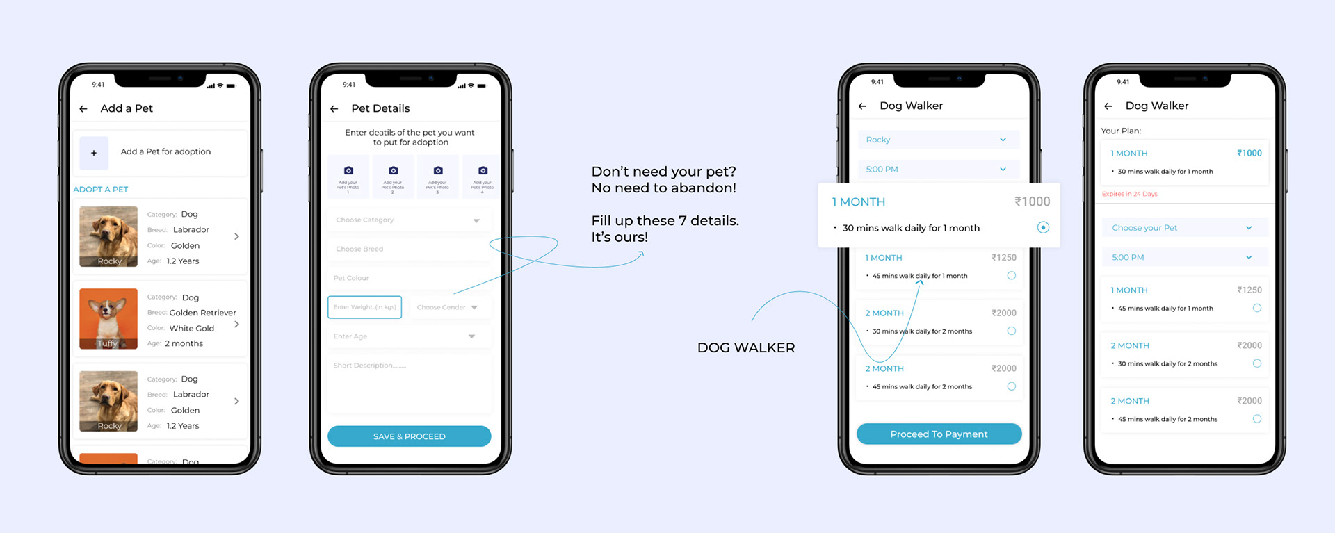 A dog walker is one unique feature that working professionals would love to use. I kept a simplistic design in which you can choose your pet, a time slot, and any plan, that’s it!