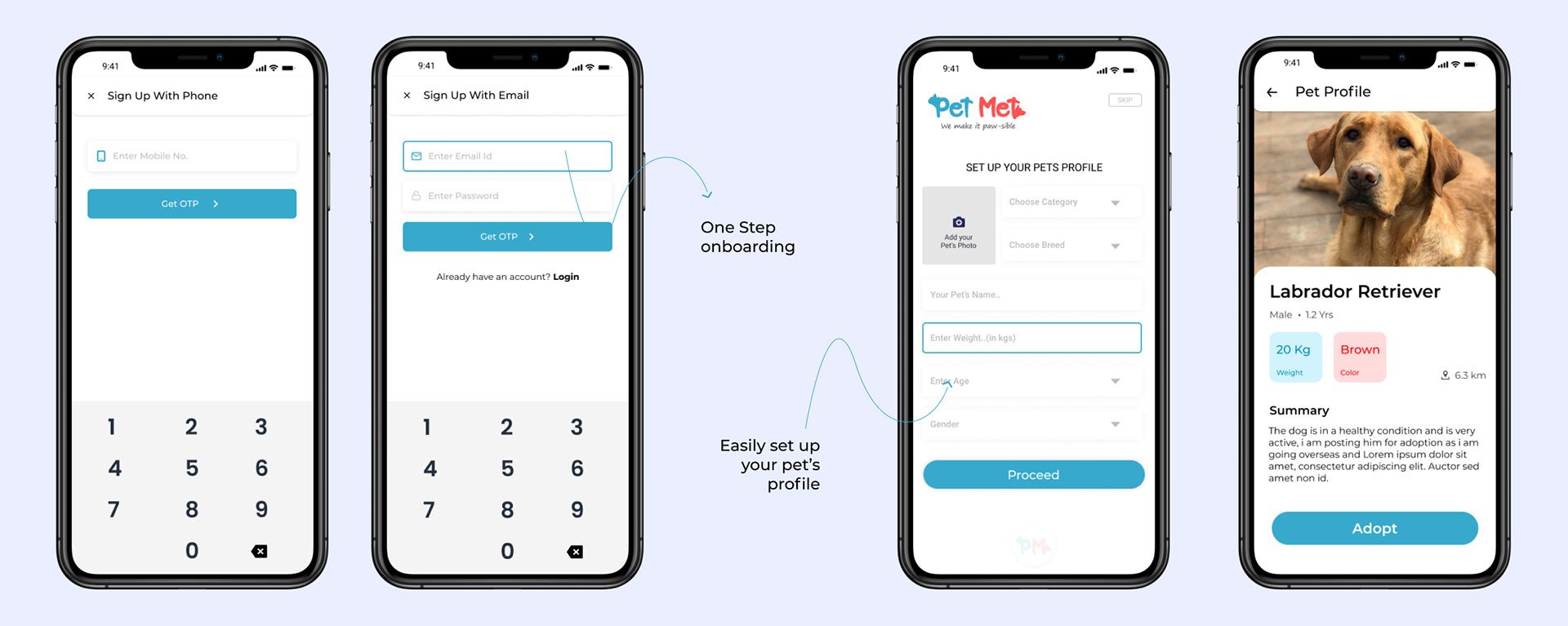 Quick and easy way to log in and Signup, Here we set up your pet’s profile you can add all the required details.