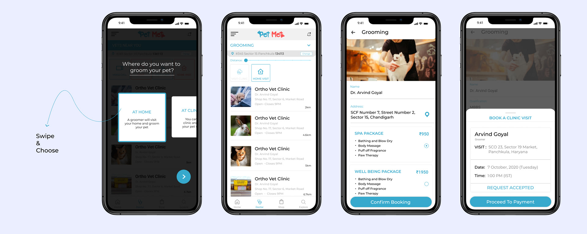 The grooming feature has two options, At Home or a visit to Clinic.