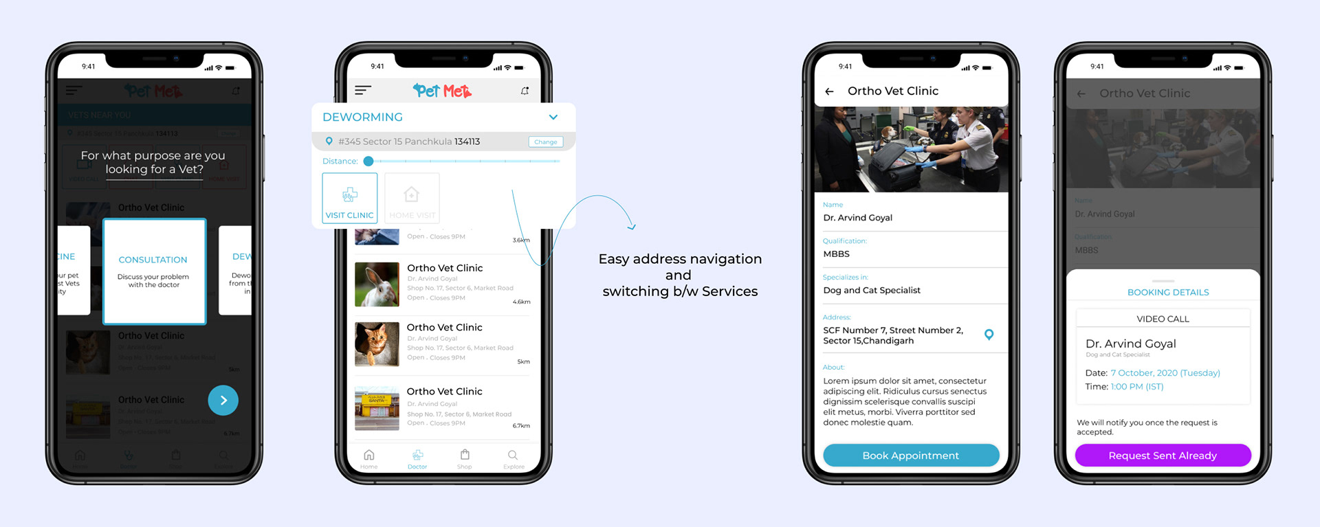You can have all the vet information and book an appointment with the available 4 options and wait for the Vet to approve your request.